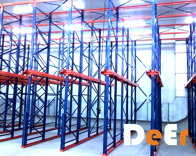 首先,我们根据冷库的条件,贯通式货架:是一种不以通道分割,连续性的整体性货架;贯通式货架采用托盘存取模式、适用于存放品种单一,大批量的货物;与托盘货架相比、仓库利用率可达到80%左右,仓库利用空间率可提高30%以上,是存储效率最高的货架。在支撑导轨上,托盘按深度方向存放,一个紧接着一个。投资成本相对比较低,适用于横向尺寸较大,品种较少,数量较多,常用来储存大批相同类型货物,由于其存储密度大对地面空间利用率较高,常用于冷库、食品、烟草等存储空间成本较高的仓库。