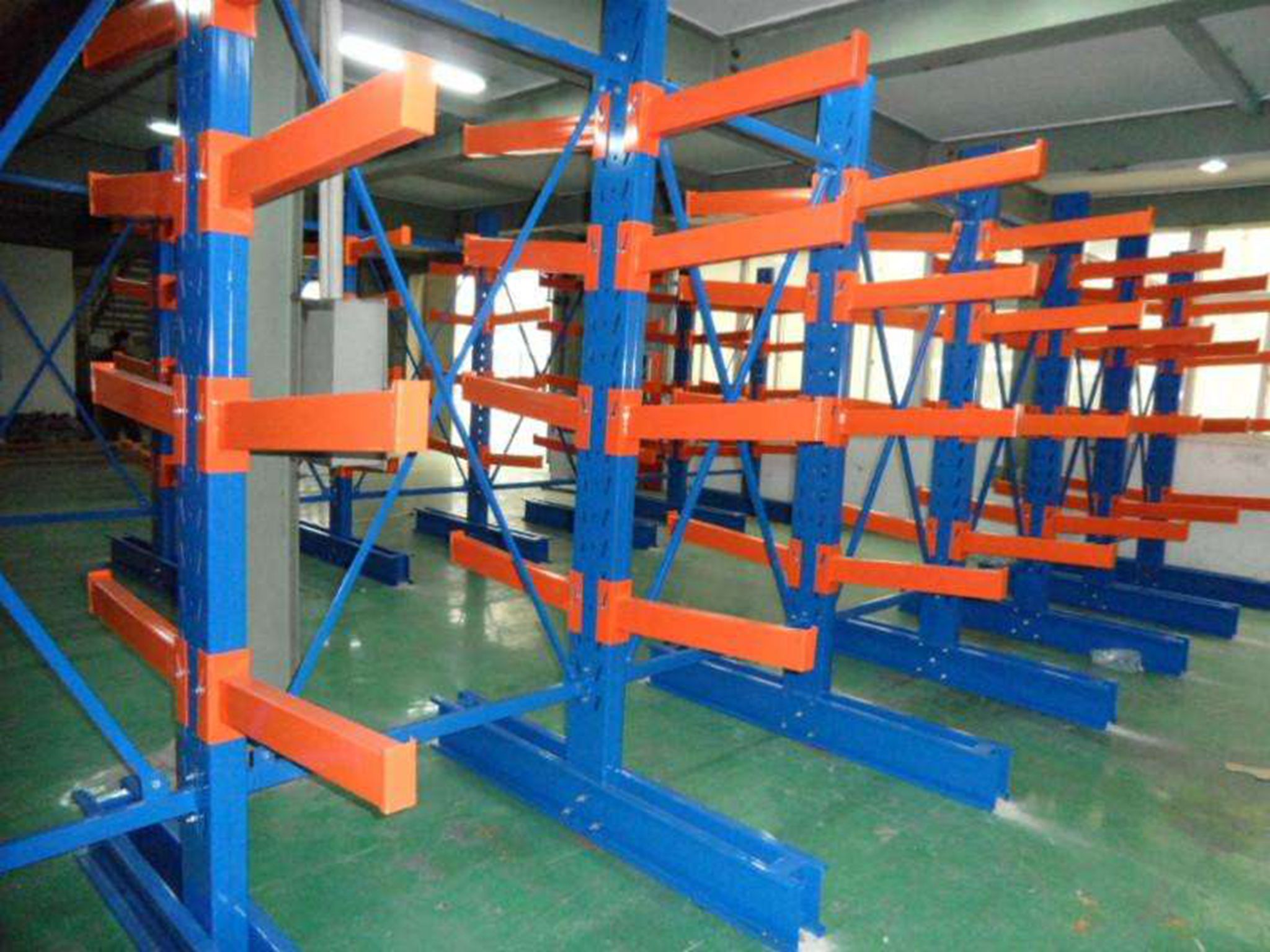 悬臂式货架:悬臂式货架适用于储存长而不规则的物品,但是一些有固定规则和流体货物就不太使用于悬臂货架。