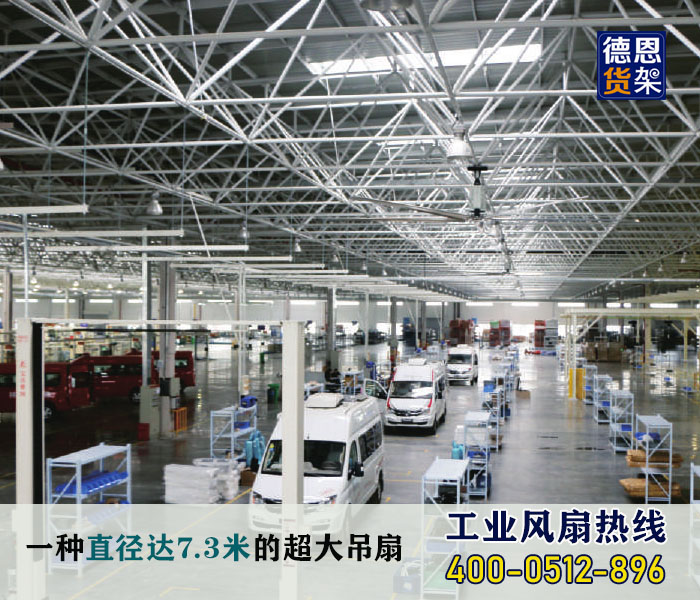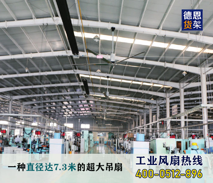 江苏德恩在接触诸多行业中,都曾深切感受到在闷热的车间或者仓库内,作业人员们的大汗淋漓,尤其南方梅雨季节仓库货物需要通风,这些难题都让领导困惑。直到我们遇见了这款产品,能为众多用户解决难题,这款工业大风扇他的优势就在于采用现代空气动力学成果,用5个变截面的流线型叶片,制造1-3级立体自然风效应,产生的风量比6-10个叶片的其它同类风扇多30%,覆盖面积更大,效果更好,使用更安全耐用。