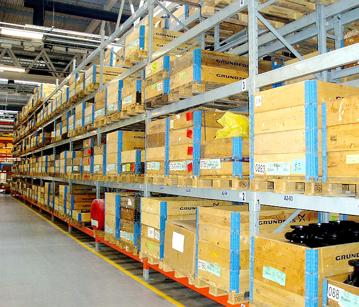 重型货架由立柱、横梁、横撑、斜撑以及自锁螺栓组装而成,可以有效防止螺栓松动后引发货架失稳,横梁采用特制的冷轧P型闭口梁;该结构具有简单可靠、重量轻、承载力强、造价低的特点;柱卡与立柱连接时配有特殊设计安全销,可以确保横梁在外力撞击下不会脱落;层板采用国际上做的条状层板,具有承载力强、耐磨损、更换简单、维修成本低廉的特点。
