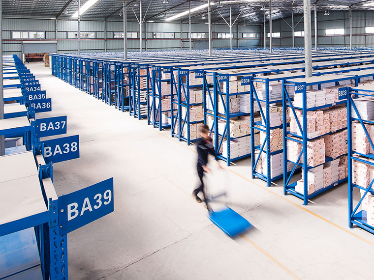 2、鞋服类产品包装方正,使用钢板分隔,可有效利用货架的面积;